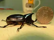 Rhinoceros beetle on a coin