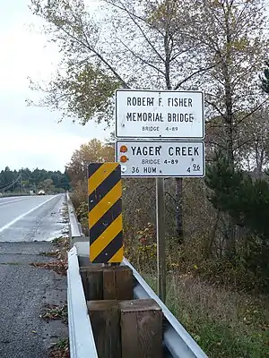 ![]() The Robert J. Fisher bridge over Yager Creek in Carlotta, California | |