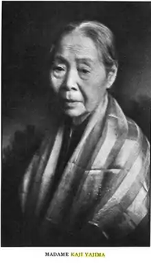 Yajima Kajiko (矢嶋 楫子, 1833 – June 16, 1925) was the founder of the Women's Reform Society and president of Japan's Woman's Christian Temperance Union. An educator, pacifist, and Christian activist, she vigorously advanced the cause for the education of women in Japan. Her name was usually seen as Kaji Yajima in the American press of her day.