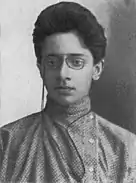 Sverdlov was born in Nizhny Novgorod as Yakov-Aaron Mikhailovich Sverdlov[1] to Jewish parents, Mikhail Izrailevich Sverdlov and Elizaveta Solomonova. His father was a politically active engraver who produced forged documents and stored arms for the revolutionary underground. The Sverdlov family had six children: two daughters (Sophia and Sara) and four sons (Zinovy, Yakov, Veniamin, and Lev). After his wife's death in 1900, Mikhail converted with his family to the Russian Orthodox Church, married Maria Aleksandrovna Kormiltseva, and had two more sons, Herman and Alexander. Sverdlov's father was sympathetic to his children's socialist tendencies and 5 out of his 6 children would become involved in revolutionary politics at some point. Mikhail watched as his household slowly became a revolutionary hotspot, where the Novgorod Social Democrats would meet, write pamphlets, and even forge stamps for false passports. Yakov's eldest brother Zinovy was adopted by Maxim Gorky, who was a frequent guest at the house. Zinovy was the only Sverdlov to reject revolutionary politics and had little to no contact with Yakov after the revolution.[2]