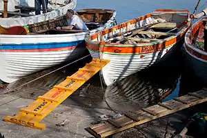 Yal-6 or six-oar yal – seaworthy boat is rigged with a split-lug sail on a single mast. Originally the yal-6 was made of wood, but since the late 1990s more commonly made of plastic. Propelled with oars, sails or outboard motor.