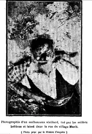 The Greek army captured Orhangazi on 16 October 1921 after resistance by Turkish militias. The next day there was a massacre in the nearby Turkish village of Çakırlı, men were locked in the local mosque where they were burned alive and shot.[23][24] Two days later on 18 October 1921 the nearby Turkish village of Üreğil (consisted of 90 families) was burned down.[24] On 16 April, the some 1,000 Turkish inhabitants of Orhangazi were sent to Gemlik by the Greek army while the town was partially burned down[2] the same day by the Greeks. The refugees reached Gemlik under very difficult circumstances, most were robbed and some killed on the way.[5] They were later evacuated by the Allied commission to Istanbul by boat. The next day on 17 April, there was a massacre[24] in the village of Gedelek which was burned[5] The Ottoman gendarmerie reported the attack on the village of Ali Al Sabah. On 10 May 1921 the village was looted by Christian paramilitaries and the women were raped.[2]