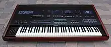 The Yamaha DX5 is a derivative of the DX1, introduced in 1985 with a list price of US$3,495. It has the same synth engine, but lacks the DX1's fully weighted keys, polyphonic aftertouch, aesthetics (rosewood case and wooden keyboard), and user interface features (parameter displays). It includes 76 keys with channel aftertouch and slightly improved MIDI features. Programming on a DX1 is still a little easier than on a DX5 because of its extensive parameter displays, but in general both are easier to program than a DX7, because they have larger displays as well as dedicated buttons for some programming tasks.