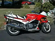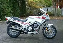 Yamaha released the FJ1100 for model years 1984 and 1985. This class is characterised by retaining sportiness while integrating more street-friendly riding characteristics, including good manoeuvrability as well as long-distance comfort, such as a more upright seating configuration designed to reduce back strain and a large fairing to reduce fatigue from wind resistance. Emphasis is placed on a balance of utility and sport, rather than pure performance orientation. The machine was noticeably narrower than many contemporaries, Yamaha achieved this by placing the alternator behind the cylinders instead of the more normal position on the end of the crankshaft.[1]