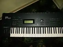 Yamaha SY77 is a 16 voice multitimbral music workstation first produced by Yamaha Corporation in 1989. The SY77 is a synthesizer whose architecture combines AFM (Advanced Frequency Modulation) synthesis, AWM2 (Advanced Wave Memory 2) for ROM-borne sample-based synthesis, and the combination of these two methods christened Realtime Convolution and Modulation Synthesis (RCM). The same technology was also packaged in a rack-mounted module released simultaneously, the TG77.