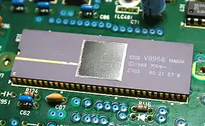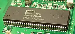 The Yamaha V9958 is a Video Display Processor used in the MSX2+ and MSX turbo R series of home computers and the "TIM" upgrade to the TI-99/4A. Also known as the MSX-Video chip,[1] it is the successor to the Yamaha V9938. The main new features are three graphical YJK[2][3] modes with up to 19268 colors and horizontal scrolling registers. The V9958 was not as widely adopted as the V9938.