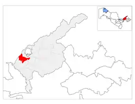 Yangiyoʻl is a district of Tashkent Region in Uzbekistan. The capital lies at the city Yangiyoʻl, itself not part of the district.[1] It has an area of 420 km2 (160 sq mi)[2] and it had 209,900 inhabitants in 2021.[3] The district consists of 5 urban-type settlements (Gulbahor, Boʻzsuv, Nov, Kirsadoq, Qovunchi) and 8 rural communities (Yoʻgʻontepa, Halqobod, Xonqoʻrgʻon, Navbahor, Niyozbosh, Qoʻsh yogʻoch, Shoʻralisoy, Eski Qovunchi).[1]