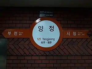| Wikimedia Commons has media related to Yangjeong Station. |
