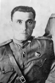 After recovering from his injuries he attended the Frunze Military Academy and briefly taught at the Arzamas Higher Officer Staff School before being redeployed to the warfront. He participated in the Battle of Stalingrad and the fighting at the Khopyor River.[3] For his actions in repelling attacks from German tanks he was nominated for the title Hero of the Soviet Union by Konstantin Rokossovsky, but he did not receive the title.[10]