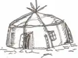 A Yaranga is a cone-shaped or rounded reindeer-hide tent.[1] It is built of a light wooden frame covered with reindeer skins or canvas sewn together.