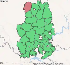 Yarsky District (Russian: Я́рский райо́н; Udmurt: Яр ёрос) is an administrative[1] and municipal[7] district (raion), one of the twenty-five in the Udmurt Republic, Russia. It is located in the northwest of the republic. The area of the district is 1,524.3 square kilometers (588.5 sq mi).[3] Its administrative center is the rural locality (a settlement) of Yar.[2] Population: 15,286 (2010 Census);[4] 18,880 (2002 Census);[9] 20,595 (1989 Census).[10] The population of Yar accounts for 43.2% of the district's total population.[4]