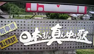 ![]() Sign proclaiming Yasaka Station to be the "centre of Japan" | |