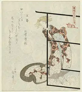Gakutei is also known for his prolific writing;[8][9] he wrote many humorous poems called kyōka and used them in his artwork and prints.[10] Additionally, he was responsible for a Japanese translation of Journey to the West,[10] for which he also completed illustrations.[11]