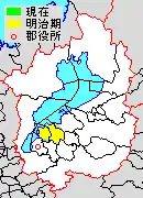 Map of Yasu District with Meiji period (1890) area in yellow.