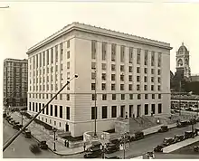 On June 12, 1942, Judge James Alger Fee of the United States District Court for the District of Oregon began presiding over the non-jury trial of Yasui, the first case challenging the curfew to make it to court.[7] The trial was held at the Federal Courthouse in Portland.[8] Fee determined in his ruling issued on November 16, 1942, that the curfew could only apply to aliens, as martial law had not been imposed by the government.[8][9] However, he also ruled that because Yasui had worked for the Japanese government he had forfeited his citizenship, so that the curfew did apply to him.[6][7][9] Fee sentenced Yasui to one year in jail, which was served at the Multnomah County Jail, and $5,000 fine.[10] This federal court decision with constitutional and war power issues made news around the country.[11]