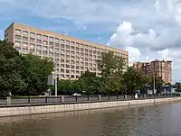 Joseph Stalin's 1935 Moscow Reconstruction Plan called for the creation of an inner ring of navigable waterways in northern Moscow.[41][42] The proposed Northern Shipping Canal (Russian: Северный судоходный канал) connectingKhimki Reservoir with the Yauza[41] would have made the latter navigable up to Sviblovo;[42] the Yauza valley north from Sviblovo would have been flooded into a broad reservoir.[42] A system of four[42] sets of locks would gradually reduce the water level; the river itself was to be deepened and widened into a navigable canal with granite embankments and broad, riverside highways.[41] Further industrialization of the Yauza was prohibited; the embankments of the Moskva and the Yauza were zoned for high-profile public and residential buildings.[41]