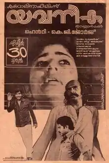 Yavanika (transl. Curtain) is a 1982 Indian Malayalam-language mystery thriller film written and directed by K. G. George, and starring Mammootty, Bharath Gopi, Nedumudi Venu, Jalaja and Thilakan in lead roles.[1][2][3] The film is regarded as one of the finest mystery or investigative thrillers ever made in Malayalam cinema.[4] The film explores backstage drama of a travelling drama group. The plot is structured around the search for an unpopular tabla player of the troupe who suddenly disappears. The movie makes use of the Rashomon Effect