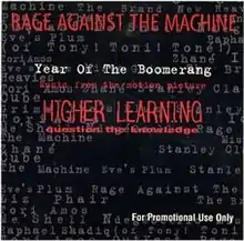 "Year of tha Boomerang" is a song by American rock band Rage Against the Machine. It originally appeared in the film and on the soundtrack of Higher Learning in 1994 and was eventually included on their second album Evil Empire (1996). On the back of the soundtrack, the song is called "Year of the Boomerang". Although the track was released as a promotional radio CD single, it was never given a domestic release.