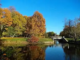 Yelagin Island (Russian: Елагин остров) is a park island at the mouth of the Neva River which is part of St. Petersburg, Russia. Yelagin Island is home to the Yelagin Palace but has a few other buildings as well. A former suburban estate of 18 century Russian nobles and later of a dowager Empress Maria, widow of Paul I of Russia, it has been serving since after the revolutions of 1917 as a city public park, officially Central Park of Culture and Rest named after Sergey Kirov, the famous Bolshevik city leader of early 1930s who supervised development of the city.