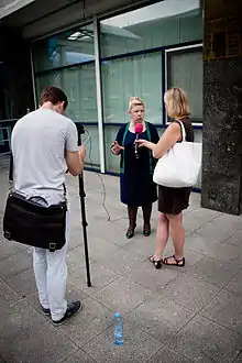 Yelena Mizulina is the author of several legislative projects directed against "propaganda of homosexuality" including the infamous Russian LGBT propaganda law.[73] She believes that the phrase "gays are people too" should be considered potentially extremist by the Federal Service for Supervision of Consumer Rights Protection and Human Welfare.[74] Yelena Mizulina is also in favor of confiscating children from gay parents, including biological parents.[75][76][77][78]