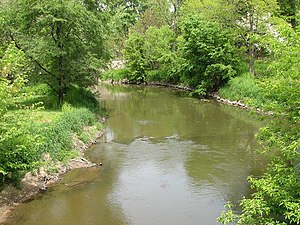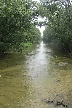 The Yellow River is a 62.3-mile-long (100.3 km)[6] tributary of the Kankakee River in the Central Corn Belt Plains ecoregion, located in northern Indiana in the United States. Via the Kankakee and Illinois rivers, it is part of the watershed of the Mississippi River, draining an area of 427 square miles (1,110 km2). The river's name possibly derives from a translation of the Shawnee name for the river, We-thau-ka-mik, meaning "yellow waters",[7] a description perhaps owing to the presence of sand in the riverbed.[8]