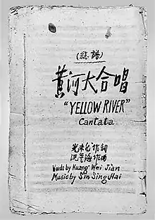 The Yellow River Cantata (Chinese: 黄河大合唱; pinyin: Huánghé Dàhéchàng) is a cantata by Chinese composer Xian Xinghai (1905–1945). Composed in Yan'an in early 1939 during the Second Sino-Japanese War, the work was inspired by a patriotic poem by Guang Weiran, which was also adapted as the lyrics. Premiered on April 13 of the same year in the Shanbei Gongxue Hall of Yan'an, the work soon spread to all parts of China.[1]