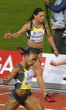 Polyakova represented Russia at the 2008 Summer Olympics in Beijing competing at the 100 metres sprint. In her first round heat she placed first in front of Jade Bailey and Sherone Simpson in a time of 11.24 to advance to the second round. There she improved her time to 11.13 seconds, finishing second behind Shelly-Ann Fraser to qualify for the semi finals. With a time of 11.38 she was unable to qualify for the final as her time was only the seventh time of her heat, causing elimination.[1] Together with Aleksandra Fedoriva, Yulia Gushchina and Yuliya Chermoshanskaya she also took part in the 4x100 metres relay. In their first round heat they placed second behind Jamaica, but in front of Germany and China. Their time of 42.87 seconds was also the second time overall out of sixteen participating nations. With this result they qualified for the final in which they sprinted to 42.31 seconds, the first place and the gold medal. The Jamaican team did not finish due to a mistake in the baton exchange.[1]