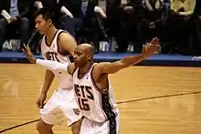 Yi made his return from injury after the 2009 NBA All-Star Game in a loss to the Houston Rockets on 17 February 2009.[37] However, after averaging only six points on 36% shooting after his return, Yi was removed from the team's starting lineup.[38] His final averages for the season were 8.6 points and 5.3 rebounds per game, as well as a 38% shooting percentage from the field and 34% on three-point field goals.[29] After New Jersey finished the season outside of the playoffs,[39] Yi's agent Dan Fegan suggested New Jersey played better when Yi played more minutes and took more shots, and asks "who's accountable?" New Jersey's head coach Lawrence Frank said that "you have to be patient. He's only 21", and Yi assessed his season by saying he was "still too much up and down."[40]