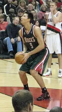 Yi was named to Milwaukee's starting lineup by head coach Larry Krystkowiak in place of Charlie Villanueva to begin the 2007–08 season.[18] He recorded nine points and three rebounds in a debut loss to the Orlando Magic.[19] He played his first home game in Milwaukee three days later and scored 16 points while grabbing eight rebounds in a 78–72 win over the Chicago Bulls.[20] The game was also Yi's first game to be televised nationally in China, where it was watched by an estimated 100 million viewers.[21] Yao Ming praised Yi's play in his first few games, saying, "If you compare us in our third NBA games, you will see that Yi's statistics are far better than mine."[21]