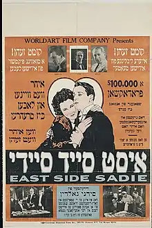In 1929, Sydney M. Goldin returned from Vienna to the Lower East Side, where he formed a partnership with producer Max Cohen. They decided to use popularized sound technology. In May 1929 they completed East Side Sadie, which had a few scenes with synchronized dialogue: J. Hoberman noted that in fact, it "contained scarcely more Yiddish than the few words heard in The Younger Generation". Then, on 25 October, they released Ad Mosay ("Until When"; English title: The Eternal Prayer). With a budget of $3,000, this 36-minute musical revue loosely inspired by the 1929 Hebron massacre was the first real Yiddish talkie. Goldin then allied with executive Joseph Seiden, who established the studio Judea Film and was keen on reaching the large Yiddish-speaking immigrant public. The pair produced eight short (one or two reel) sound pictures within just a year, each within a $3,000 budget and a single day of principal photography. The artistic quality of these films was deemed so low that the Yiddish Actors' Union prohibited its members from appearing in them, lest they damage the union's reputation.[6][7]