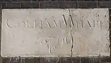 The oldest buildings in Yiewsley today date from the late 16th century or early 17th century and are situated at either end of Yiewsley High Street. At the northern end of the High Street is Yiewsley Grange (Also known as Brookside) which overlooks the River Pinn and is Hillingdon Manor School today.[14] Next to Yiewsley Grange is the Six-bay Barn at Philpot's Yard (Formally Philpot's Farm).[15] At the southern end of the High Street is the De Burgh Arms Public house, named in honour of the De Burgh family who became the Lords of Colham Manor from 1787.[16][11]