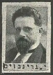 In Poland, Gruenbaum headed the Radical Zionist faction, initially known in Poland as Al Hamishmar.[1] In 1919 he was elected to the Sejm (Polish parliament), where, together with Apolinary Hartglas, he organized a "Jewish bloc" that united most of the Jewish parties.[2] He was the moving force in forming a collaboration with other minority parties represented in the Sejm, including Germans, Ukrainians, and others, to form a Bloc of National Minorities alliance in 1922, that acted to represent the rights of minority populations in Poland. His efforts brought about an increase of Jewish representation in the Sejm, which was accompanied by a rise of the political Zionism. Gruenbaum was known for his courageous and militant stance against his opponents and on behalf of minorities' interests, while equally critical of the ultra-orthodox party Agudat Israel and Jewish lobbying.