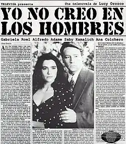 Yo no creo en los hombres, is a Mexican telenovela produced by Lucy Orozco in association with Isabelle Tardán for Televisa in 1991. This is based on the radionovela Yo no creo en los hombres written by Caridad Bravo Adams.