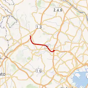 The entire expressway lies within Yokohama in Kanagawa Prefecture
