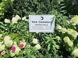 The site of York Cemetery was originally a property farmed by Joseph Shepard, who bought the land in 1805.[1] The brick farm house on the property was constructed in 1837 by Joseph's son, Michael. Prior to the 1940s, the land was also used as the short-lived Willowdale Airfield.