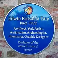 Blue plaques in the city include dedications to Alcuin, the poet W. H. Auden, the nineteenth-century architect GT Andrews, the comedian Frankie Howerd, Guy Fawkes’ house in Stonegate, and one to commemorate Richard III’s investiture of his son as Prince of Wales in York in 1484. Recent additions have included plaques to: Henry Baines,[22] Anne Lister[23] and partner Ann Walker, Elizabeth Montagu,[24] George Butterworth, James Backhouse, and John Snow.