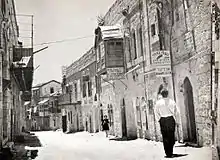 In 1869, Rivlin and six partners established the Jewish neighborhood of Nahalat Shiv'a.[8][12][2] Rivlin was the first to build a house and to live in it at night to prove that the settlement was viable.[13][14] He protected himself from attackers by constructing a high wall around his home and paying a Turkish soldier and, later, an Arab guard, to keep an eye on him. He insisted that his wife remain in the Old City, while another Jew boarded with him.[15] Until more homeowners moved in two and a half years later, he returned to his wife only on Shabbat. In 1872 the neighborhood was sufficiently populated that Rivlin brought his wife to live with him.[15]