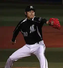 Yoshihiro Ito (伊藤 義弘, born June 2, 1982 in Fukuoka) is a Japanese former professional baseball pitcher who played for the Chiba Lotte Marines in Japan's Nippon Professional Baseball from 2008 to 2015.