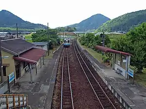Yoshinobu Station (吉野生駅, Yoshinobu-eki) is a railway station in Matsuno, Kitauwa District, Ehime Prefecture, Japan. It is operated by JR Shikoku and has the station number "G37".[1][2]
