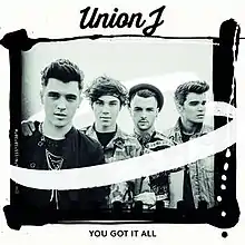 "You Got It All" is a song performed by English boy band Union J, and written by Nasri (Magic!). It was released on 28 November 2014 in Ireland,[1] and on 30 November 2014 in the UK,[2] as the second and final single from Union J's second studio album You Got It All – The Album (2014). Additionally, a version featuring The Vamps was released on 1 December 2014.[3] It's the group's final single with George Shelley after he left the group on 4 March 2016.