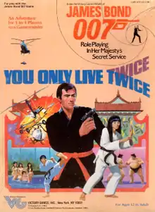 Victory Games, a division of Avalon Hill, acquired the license to create a role-playing game based on the James Bond movie franchise and published James Bond 007 in 1983. The game was supported by many adventures and supplements, including 1984's You Only Live Twice, a boxed set designed by Neil Randall, with artwork by Ted Koller and James Talbot.[3]