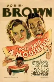 You Said a Mouthful is a 1932 American pre-Code comedy film directed by Lloyd Bacon and written by Robert Lord and Bolton Mallory. The film stars Joe E. Brown, Ginger Rogers, Preston Foster, Allen Hoskins, Harry Gribbon, Edwin Maxwell and Sheila Terry.[1][2] The film was released by Warner Bros. on December 8, 1932.