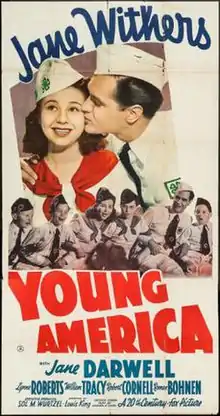 Young America is a 1942 American drama film directed by Louis King and written by Samuel G. Engel. The film stars Jane Withers, Jane Darwell, Lynne Roberts, Robert Cornell, William Tracy and Roman Bohnen. The film was released on February 6, 1942, by 20th Century Fox.[1][2][3]