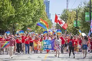 Under the leadership of president (and future MP) Greg Fergus, the YLC began to push for the legalization of same-sex marriage in 1994, the first group in the Liberal Party to do so.[3] The 2003 leadership race, which saw YLC alum Paul Martin become prime minister, again featured heavy Young Liberal involvement, with intense battles for delegates on many campuses (especially by the Martin campaign.) Young Liberals mobilized against Canada's proposed entry into United States Missile Defence System in 2005, helping convince the Martin Government to say no to the Americans.