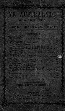 Publication began in Ballarat, was transferred to Melbourne in April 1871,[1] and ceased in 1872, for reasons which remain unclear. In 1874, it was replaced by Yr Ymwelydd, a similar newspaper edited by Rev. Evans.