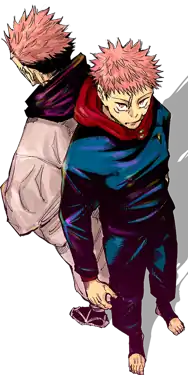 Yuji Itadori (Japanese: 虎杖悠仁, Hepburn: Itadori Yūji) is a fictional character and the main protagonist of the manga series Jujutsu Kaisen created by Gege Akutami. Yuji is a first-year jujutsu sorcerer at Tokyo Jujutsu High who is thrown into the world of sorcerery after eating one of twenty fingers belonging to Ryomen Sukuna (宿儺, Sukuna), a powerful cursed spirit—a being manifested from cursed energy from the negative emotions flowing from humans. With his classmates Megumi Fushiguro and Nobara Kugisaki, Yuji exorcises curses while trying to honor his grandfather's legacy and save others unconditionally so that when he is executed after eating all twenty fingers, he will not be alone in his death.