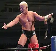 On December 5, 2009, NJPW announced that Yujiro and Naito were returning to Japan as part of their annual January 4 Tokyo Dome show called Wrestle Kingdom IV in Tokyo Dome.[30] At the event Yujiro and Naito defeated Team 3D (Brother Ray and Brother Devon) and Bad Intentions (Giant Bernard and Karl Anderson) in a three-way hardcore match to win the IWGP Tag Team Championship.[31] No Limit had their first title defense on February 14, 2010, defeating El Texano Jr. and El Terrible to retain the title.[32] He began using his full name again in February 2010 to signal his progress.[33] On April 4 at New Dimension No Limit joined New Japan's top heel stable Chaos, led by the IWGP Heavyweight Champion Shinsuke Nakamura.[34] On May 3, 2010, at Wrestling Dontaku 2010 Takahashi and Naito lost the IWGP Tag Team Championship to Yuji Nagata and Wataru Inoue of Seigigun in a three-way match, which also included Bad Intentions (Giant Bernard and Karl Anderson).[35] On October 24 No Limit entered the 2010 G1 Tag League.[36] After three wins and two losses, they finished first in their block and advanced to the semifinals.[37] On November 7, after defeating Manabu Nakanishi and Strong Man in the semifinals, No Limit was defeated in the finals of the tournament by Yuji Nagata and Wataru Inoue.[38] On December 11, 2010, No Limit picked up a major win by defeating the TNA World Tag Team Champions, The Motor City Machine Guns, in a non–title match.[39] On May 3, 2011, No Limit failed in their attempt to regain the IWGP Tag Team Championship from Bad Intentions. After the match Takahashi walked out on Naito.[40][41] In May 2011 Takahashi took part in New Japan's first tour of the United States, the Invasion Tour 2011. On May 13 in Rahway, New Jersey, he entered the tournament to determine the first ever IWGP Intercontinental Champion, defeating Hideo Saito in his first round match.[42] The following day in New York City, Takahashi was eliminated from the tournament in the semifinal stage by his Chaos stablemate Toru Yano.[43] Upon their return to Japan, Takahashi turned on Naito on May 26, effectively dissolving No Limit.[44] Takahashi then joined Gedo, Jado and Masato Tanaka as the fourth member of the Chaos sub-group Complete Players.[45] On June 18 at Dominion 6.18, Takahashi defeated Naito in the first match between the former members of No Limit.[46] The two had a rematch on August 1 during the first day of the 2011 G1 Climax, where Takahashi was once again victorious.[47] Despite his strong start in the tournament, Takahashi only managed to win two more out of his eight remaining matches, finishing second to last in his block, whereas his former partner made it all the way to the finals.[48] On September 19, Naito defeated Takahashi in the third singles match between the two.[49] In the 2011 G1 Tag League, Takahashi teamed with Masato Tanaka with the team picking up three wins in their five group stage matches, including a win over the reigning IWGP Tag Team Champions, Bad Intentions, on October 30.[50] However, a loss to Tetsuya Naito and Tomoaki Honma on October 4, with Naito again pinning Takahashi, meant that Takahashi and Tanaka narrowly missed advancing to the semifinals of the tournament.[51] Takahashi then got involved in Tanaka's IWGP Intercontinental Championship rivalry with MVP, which built to a tag team match on January 4, 2012, at Wrestle Kingdom VI in Tokyo Dome, where Takahashi and Tanaka were defeated by MVP and Shelton Benjamin.[52] On March 11, Takahashi unsuccessfully challenged Hirooki Goto for the IWGP Intercontinental Championship.[53]