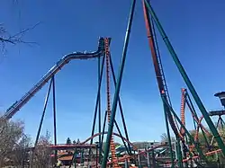 Yukon Striker is a steel roller coaster at Canada's Wonderland in Vaughan, Ontario.[2] Designed as a dive coaster from manufacturer Bolliger & Mabillard, the ride opened to the general public on 3 May 2019 in place of SkyRider, a roller coaster that was removed from the park in 2014. Featuring a height of 68 metres (223 ft), a length of 1,105 metres (3,625 ft), and a maximum speed of 130 km/h (81 mph), Yukon Striker is the world's tallest, longest, and fastest dive coaster, sharing its height record with Valravn at Cedar Point. Its four inversions and drop length of 75 metres (245 ft) also set world records among dive coaster models.