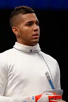 In the 2013–14 season he earned a silver medal in the European Junior Championships in Jerusalem.[4] He also took part in his first senior Fencing World Cup competition, the Trophée Monal in Paris, where he defeated World No.15 Park Sang-young of Korea, but ceded in the second round to France's Jonathan Bonnaire. At the European Championships in Strasbourg, he was defeated in the second round by Maksym Khvorost of Ukraine. In the team event, Spain created an upset by overcoming France, then Russia. They were defeated by reigning European champions Switzerland and came away with a silver medal in the first European podium for Spanish fencing since Jorge Pina's gold in sabre at the 2007 edition in Ghent.[5] At the World Championships in Kazan Pereira was eliminated by Bas Verwijlen in the preliminary table of 64. In the team event, Spain edged out Kazakhstan in the table of 64, but were defeated by Hungary and finished 15th. Pereira ended up World No.1 in Junior rankings.