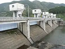 Yunohara Dam is a concrete gravity dam located in Yamaguchi prefecture in Japan. The dam is used for irrigation and water supply. The catchment area of the dam is 185.7 km2. The dam impounds about 62 ha of land when full and can store 2930 thousand cubic meters of water. The construction of the dam was started in 1972 and completed in 1990.[1][2]